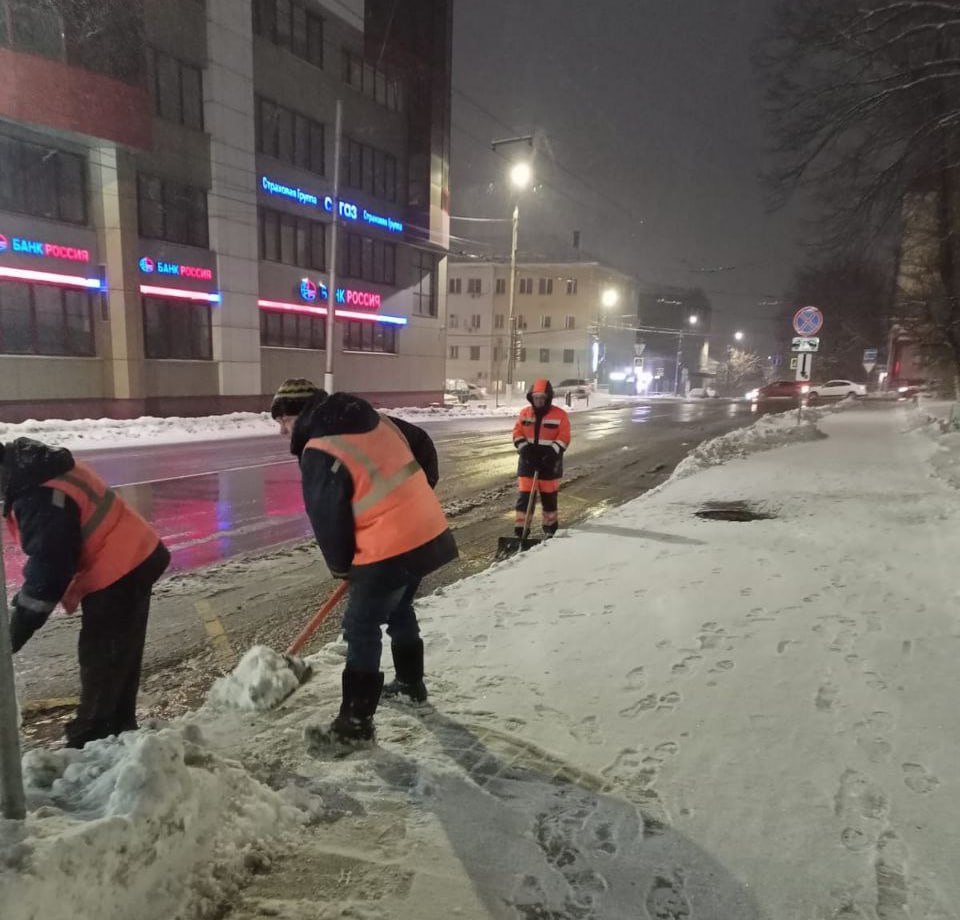 В Курске ночью не прекращалась уборка дорог. К работе привлекли 67 машин, среди которых было 35 комбинированных дорожных машин. Они очищали проезжую часть и обрабатывали ее песко-соляной смесью.