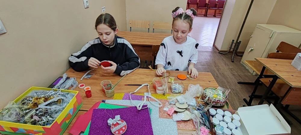 С помощью педагога Елены Урбанчук дети превращали невзрачные шаблоны в настоящие произведения искусства, щедро украшая их пайетками из позолоты, изящными лентами и яркими бусинами. Каждая деталь была наполнена смыслом и теплом рук ребят.