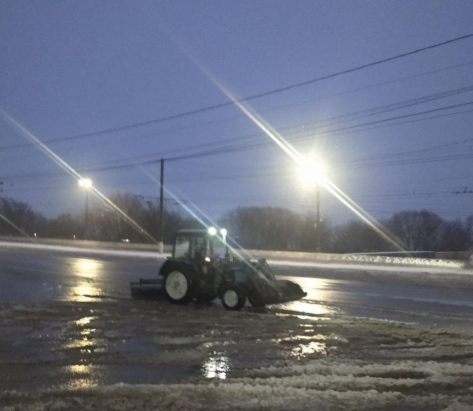 Днем 7 января было задействовано 73 единицы техники. Из?за сложных погодных условий бригады трудились в усиленном режиме, вручную освобождали дороги от талой воды и прочищали ливневки.