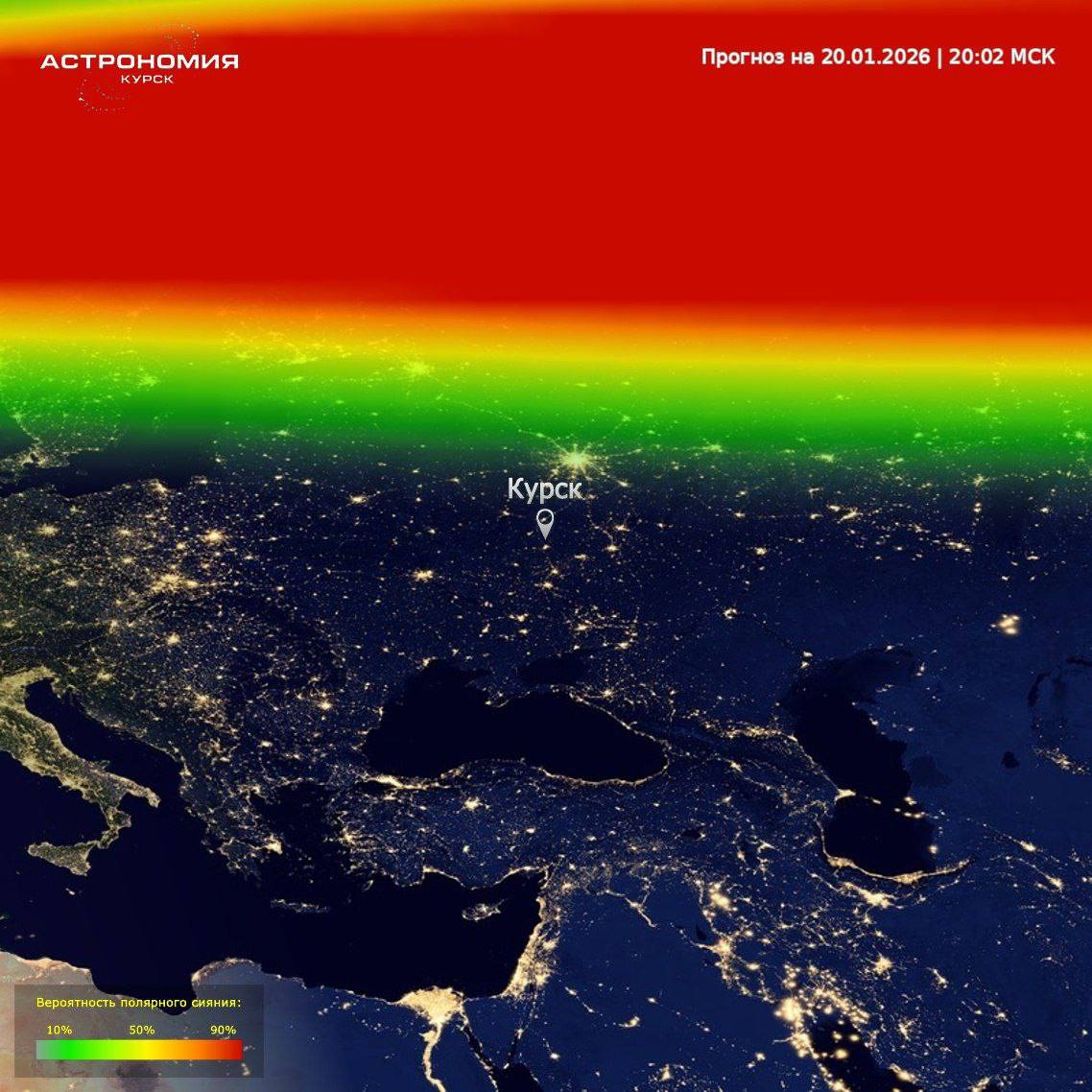 При ясной погоде в ближайшее время есть высокие шансы зафиксировать полярное сияние с территории Курской области. Не упустите возможность увидеть это редкое природное явление.