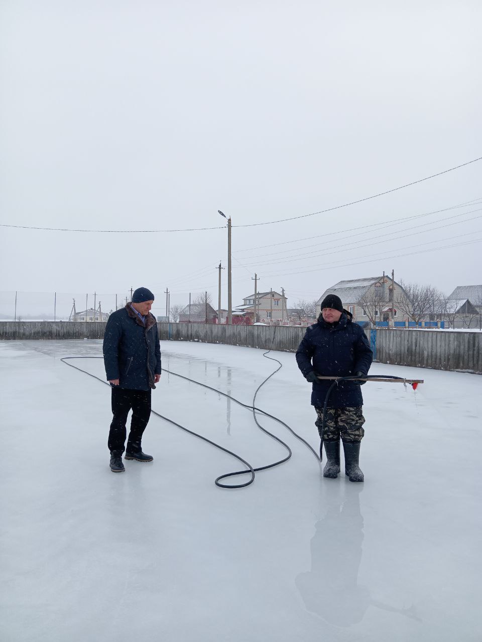 В поселке Черемисиново полным ходом идет заливка катка, и уже совсем скоро он примет любителей зимних видов спорта.