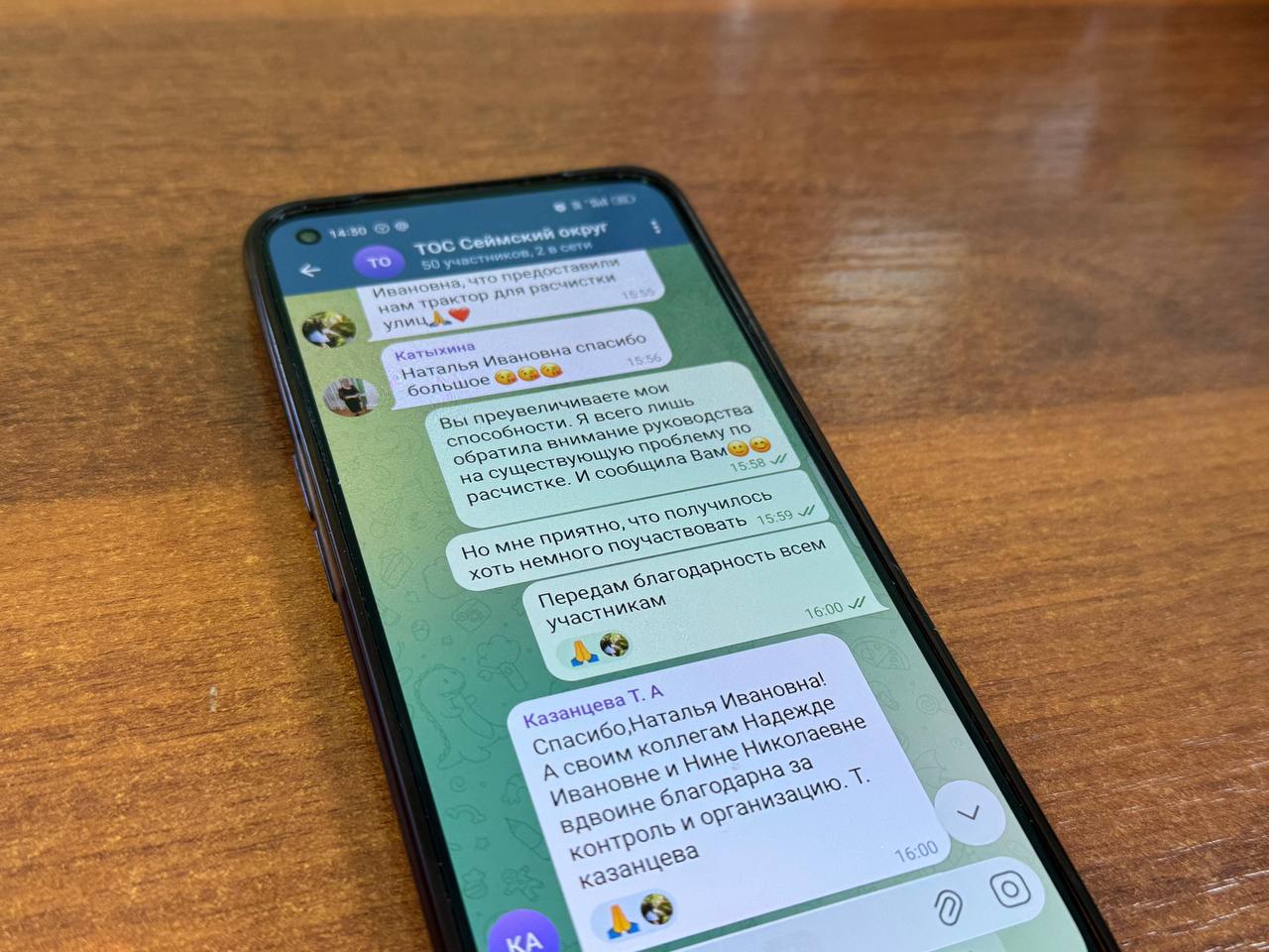 Уборка начинается, когда кто-то из жителей пишет заявку. Для этого есть специальная группа в мессенджере, где собираются все уличкомы. Жители пишут уличкомам, те передают информацию в общий чат, а потом в администрацию округа. Администрация решает, когда и какая техника нужна и заказывает её у городской службы. Техника приезжает, когда нужно, и особенно следит за сложными местами, где трудно проехать.