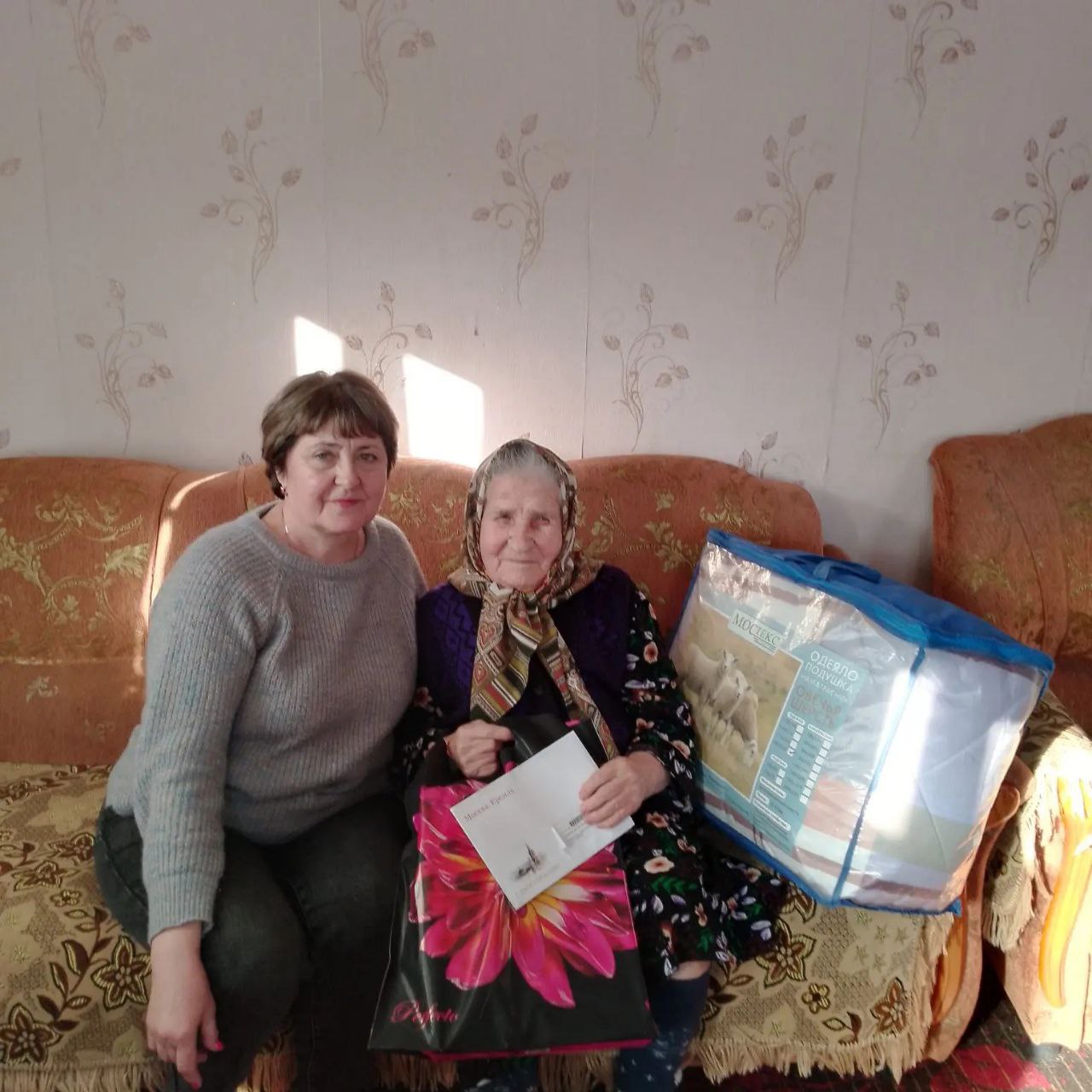 Поздравительную открытку и подарок от Президента Российской Федерации юбилярше вручила глава Михайловского сельсовета Ольга Ивановна Агеева.