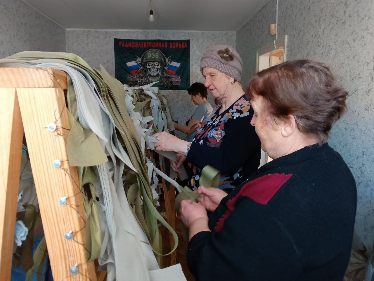 Четыре года назад началась специальная военная операция. Спустя несколько месяцев участники проекта «Курское долголетие» из города Щигры включились в волонтёрскую деятельность для помощи фронту. Они организовали мастерскую по плетению маскировочных сетей.