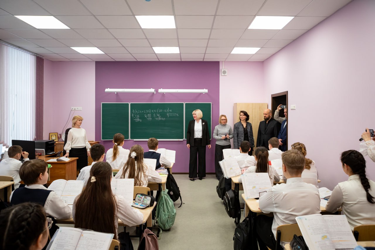 Сегодня в образовательном учреждении, которое в начале года открылось после капремонта, побывали глава города Евгений Маслов, замгубернатора Оксана Крутько и министр образования и науки региона Наталия Леонова.