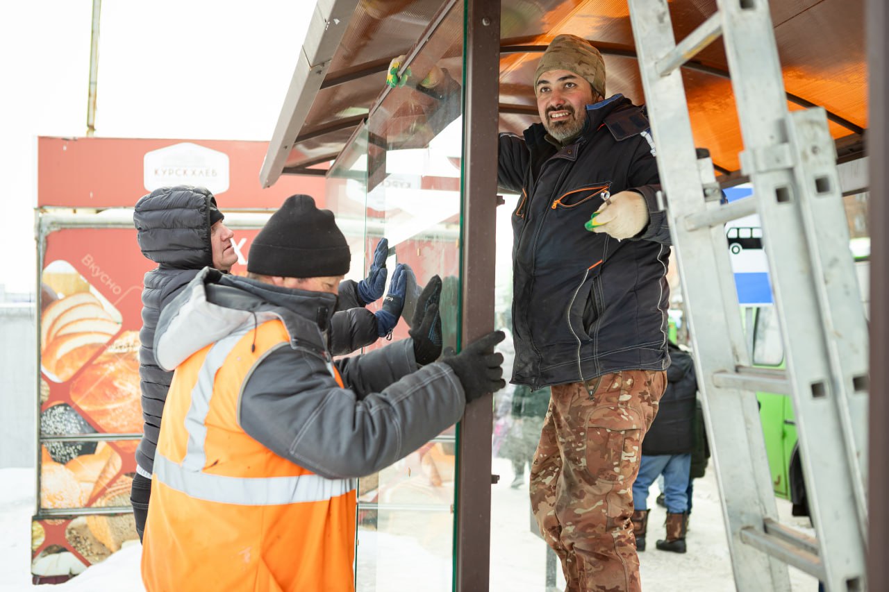 Сегодня на остановке у магазина «Полет» восстановили стекла. Родители одного из хулиганов, стрелявших в павильон, перечислили средства на работы подрядчику.