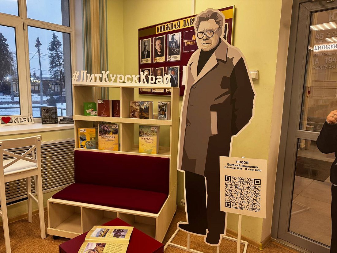 На полках представлены книги курских писателей и исследователей, которые редко встречаются в крупных книжных сетях. Среди них — произведения классиков литературы Евгения Носова и Константина Воробьёва, а также работы современных авторов, поэтов, краеведов, историков и искусствоведов.