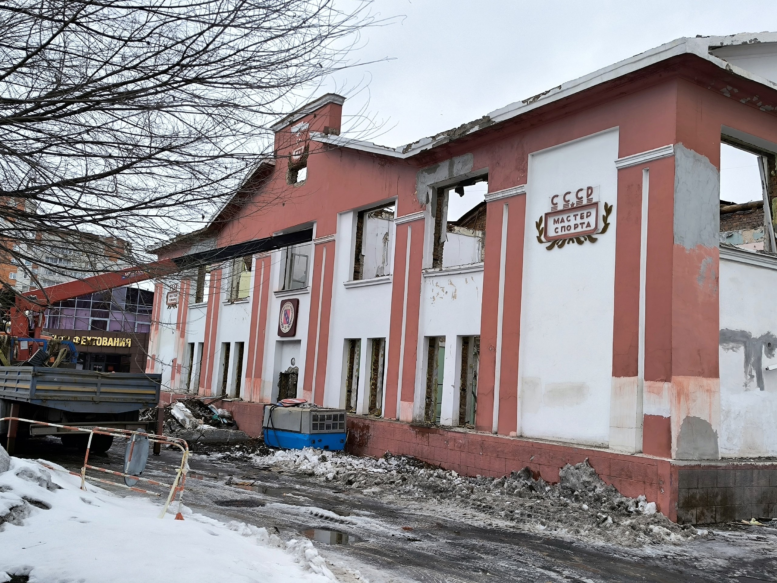 Периодически проводим выездное совещание по вопросу реконструкции физкультурно-спортивного комплекса «Спартак», расположенного по адресу: Курская область, г. Курск, ул. Советская, д.3А. Здание построено в 1963 году, имеет три этажа и рассчитано на 400 человек.