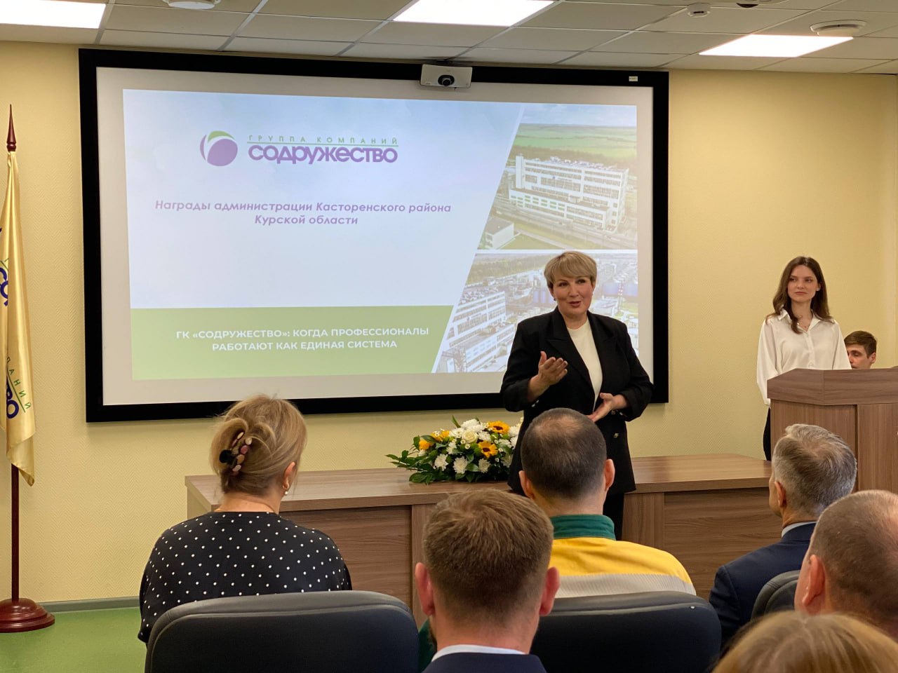 Первым местом визита стал ООО «Курскагротерминал», входящий в ГК «Содружество». Группа компаний отметила свое 32-летие, в честь этого события лучшие сотрудники предприятия были награждены от лица администрации Курской области, министерства сельского хозяйства региона и нашего района. Также в ходе торжественного мероприятия был представлен новый исполнительный директор ООО "Курскагротерминал" – Андрей Викторович Макаренко.