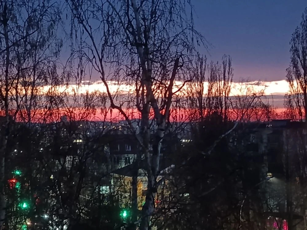 Небо этим вечером окрасилось в цвета триколора. Фото: Елена Криушина.