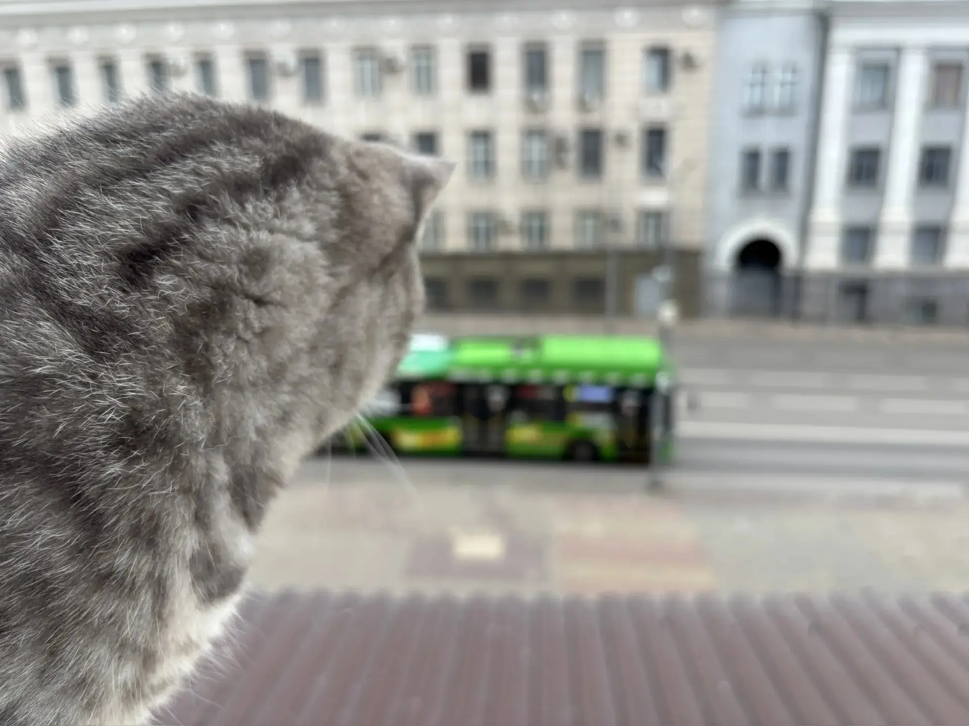 Бус наблюдает за «Волгабасами» и улицей Ленина в Курске. Делитесь своими питомцами в комментариях. Фото: Игорь Теплицкий. #Курск