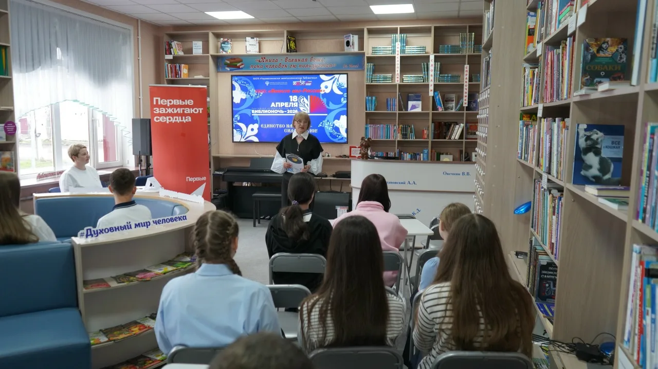 В пятнадцатый раз Черемисиновская межпоселенческая библиотека распахнула свои двери для гостей Всероссийской акции «Библионочь – 2026». В этот вечерг в стенах библиотеки собрались ученики 9 и 10 «Б» классов Черемисиновской школы. В мероприятии приняла участие председатель Совета местного отделения Движения Первых Юлия Ахрук.