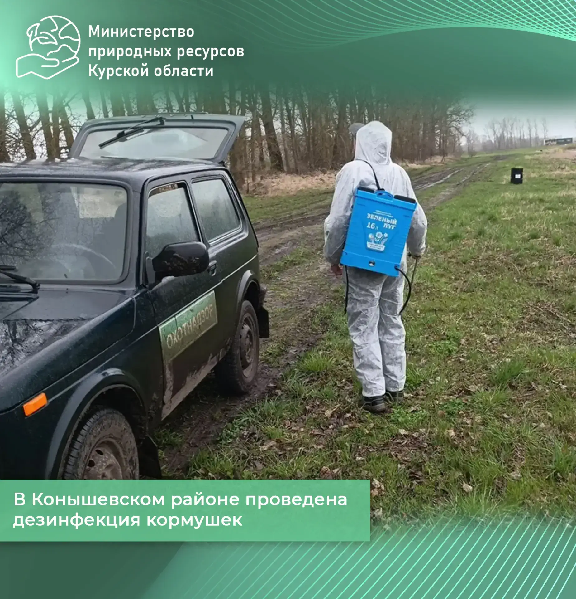 На территории охотничьих угодий Конышевского района Курской области сотрудники ОКУ «Курскохотрыбцентр» совместно с сотрудниками ОБУ «СББЖ Конышевского района» провели плановую профилактическую дезинфекцию кормушек.