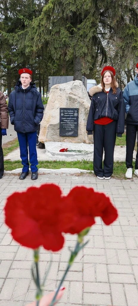 В память о тех, кто отдал свои жизни в борьбе с аварией на Чернобыльской АЭС, возложили цветы к Памятному камню…..