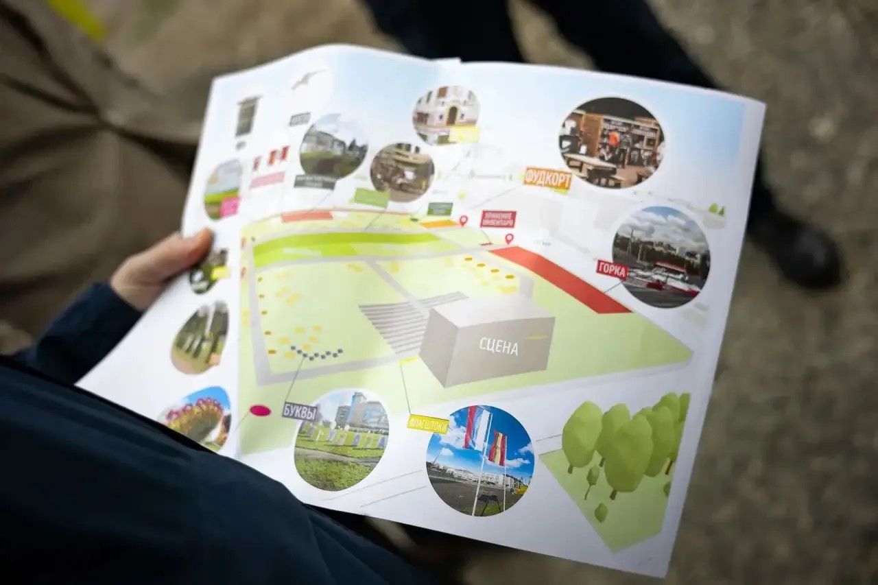 В общественном пространстве откроется выставка «Полугора в лицах» (0+) – стенды уже размещают. С потеплением появятся и торговые точки.