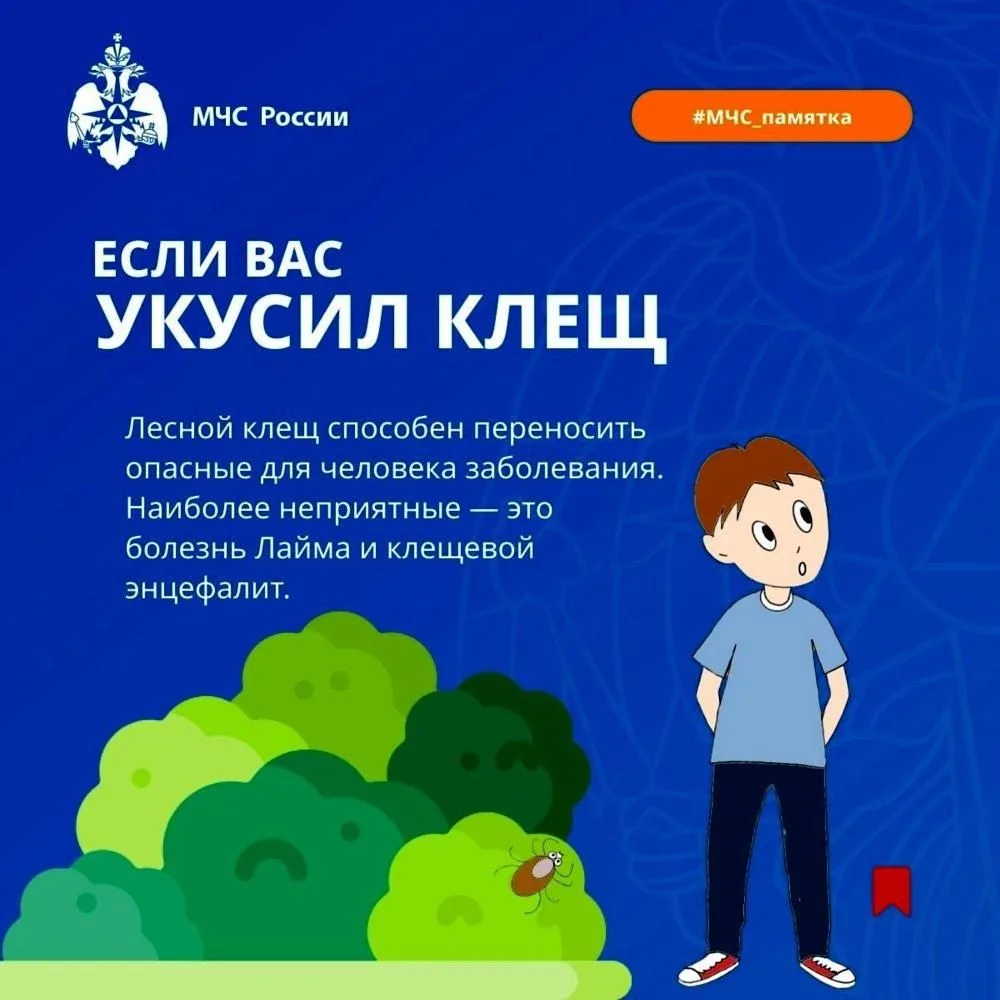 С приходом весны и потеплением люди сталкиваются с такой опасностью, как укусы клещей. В средней полосе России их пик активности приходится на апрель и май. Как избежать укусов клещей и что делать, если вас все-таки укусили, вы можете ознакомиться в нашей памятке.