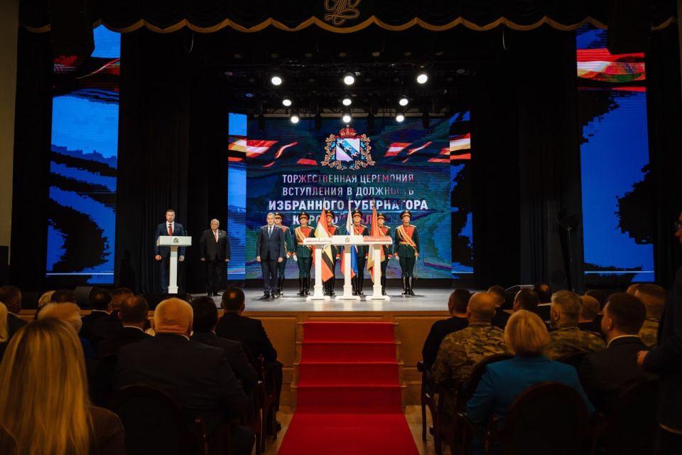 Сегодня в концертном зале «Свиридовский» я принял участие в торжественной церемонии инаугурации Губернатора Курской области Александра Евсеевича Хинштейна в составе делегации Черемисиновского района.