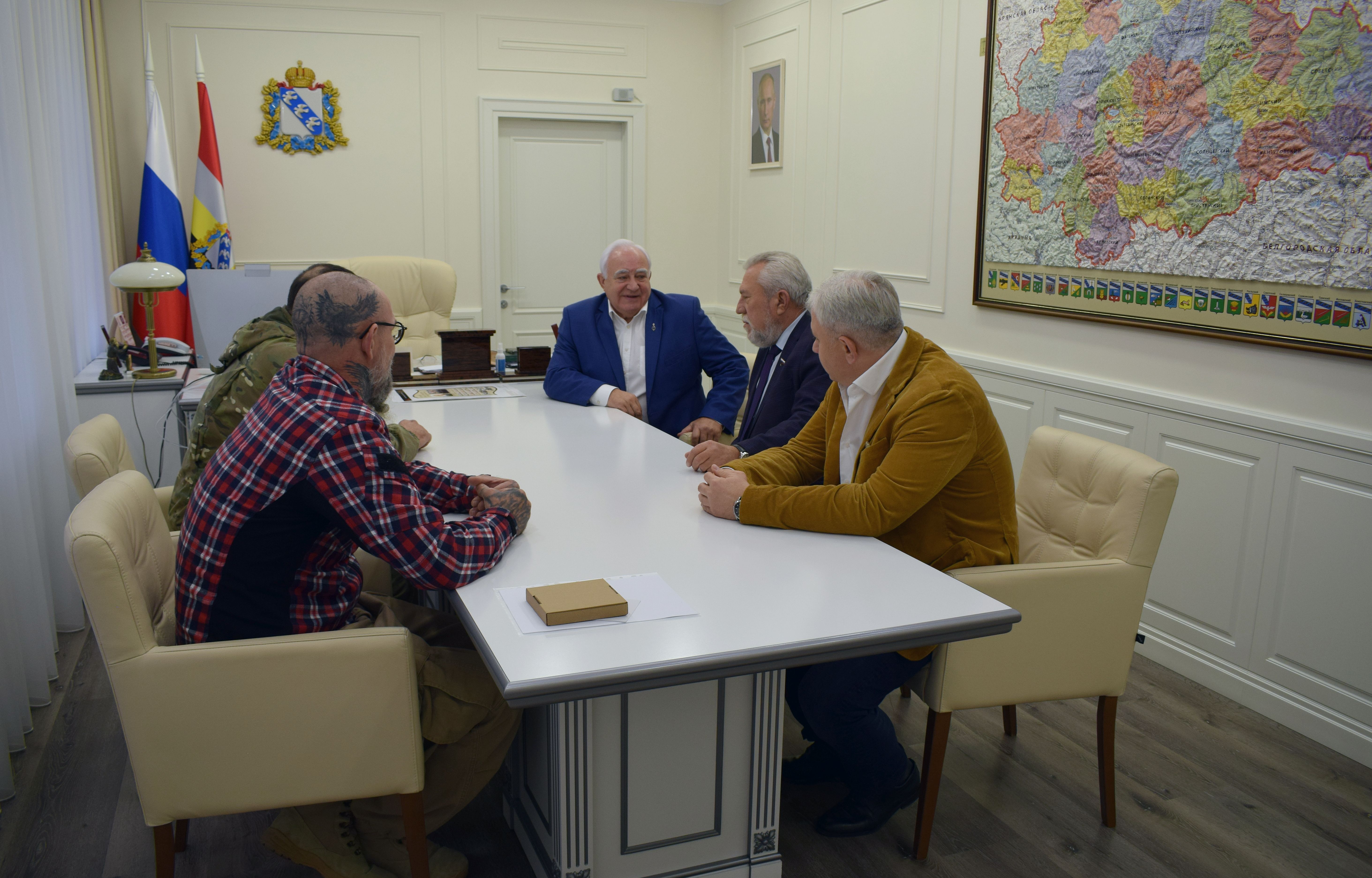 Всесторонняя помощь участникам СВО была темой встречи председателя Курской областной Думы Николая Жеребилова, его коллеги-депутата Романа Чекеда и врача-онколога Ивана Ишкова с представителями Автономной некоммерческой организации «Медико-социальный центр «Братское сердце».