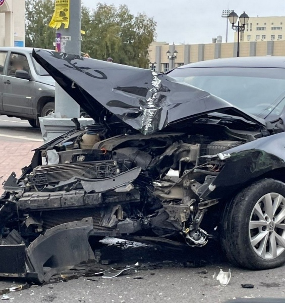 Очевидцы сообщают, что «Пассат» получил сильные повреждения. У него почти снесена передняя часть.
