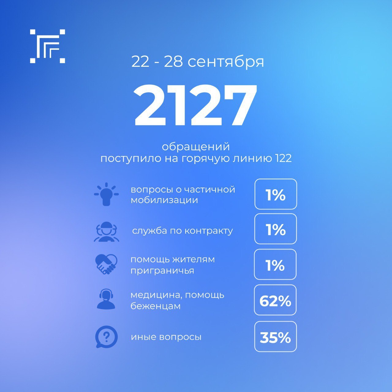 Всего за прошедшую неделю на «горячую линию» 122 поступило 2127 обращений.