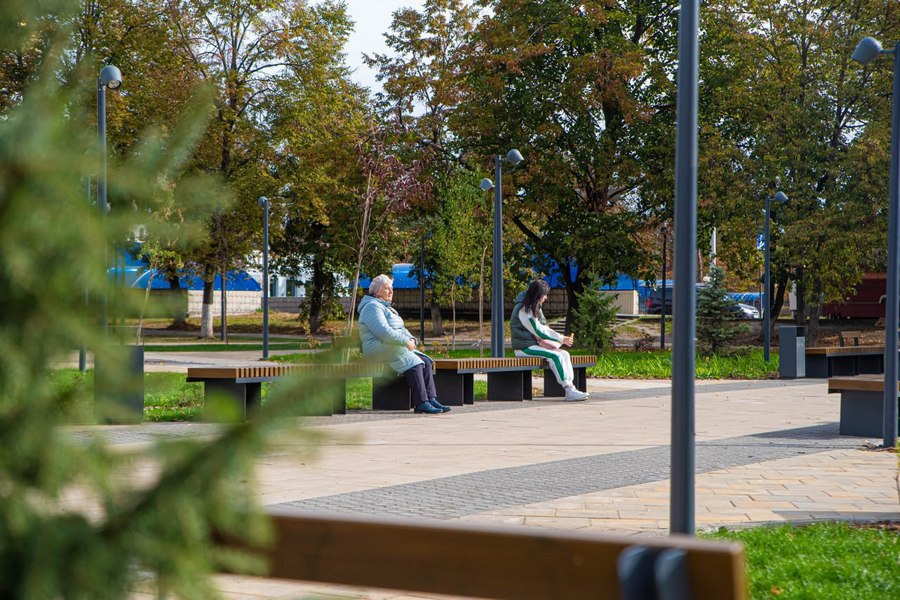 В рамках федеральной программы в сквере заменили освещение, положили новую плитку, установили детские площадки с резиновым покрытием и зоны отдыха. Также здесь высадили деревья и кустарники: ели, березы, ивы, липы, можжевельник и барбарис. Сейчас работы находятся на стадии приемки.