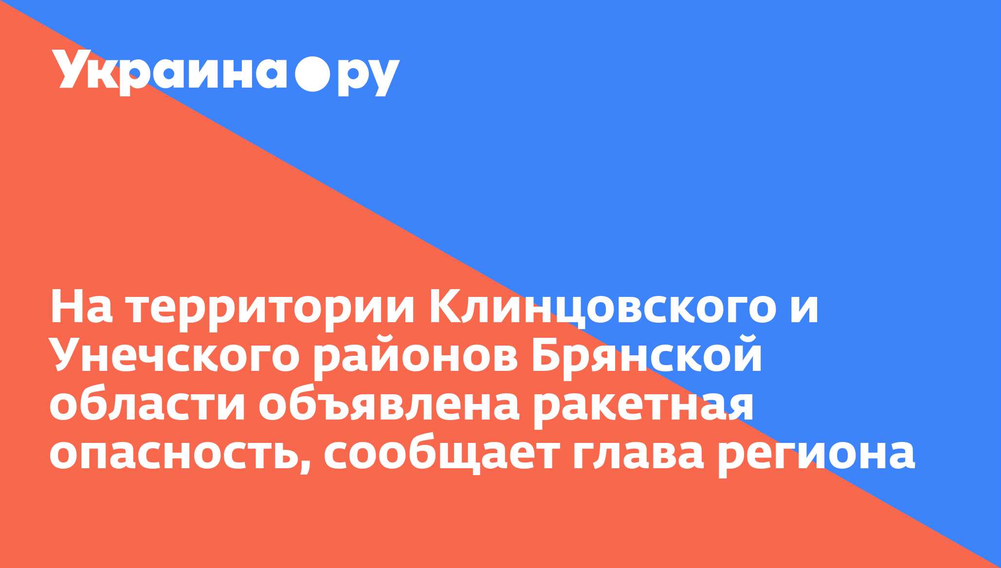 На территории Клинцовского и Унечского районов Брянской области объявлена ракетная опасность, сообщает глава региона