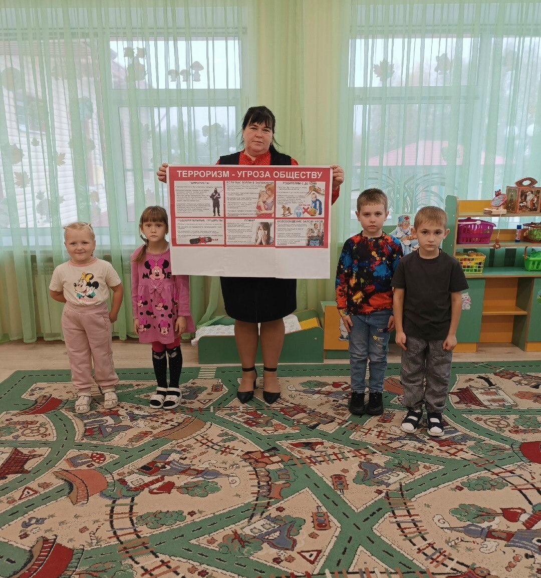 Занятие «Дети против терроризма» направлено на рассмотрение типичных опасных ситуаций при возможных контактах с незнакомыми людьми и как правильно вести себя в таких ситуациях. Ребята играли в дидактические игры «Добро и зло», «Можно – нельзя», рассмотрели различные ситуации: «Один дома», «Подозрительный предмет».