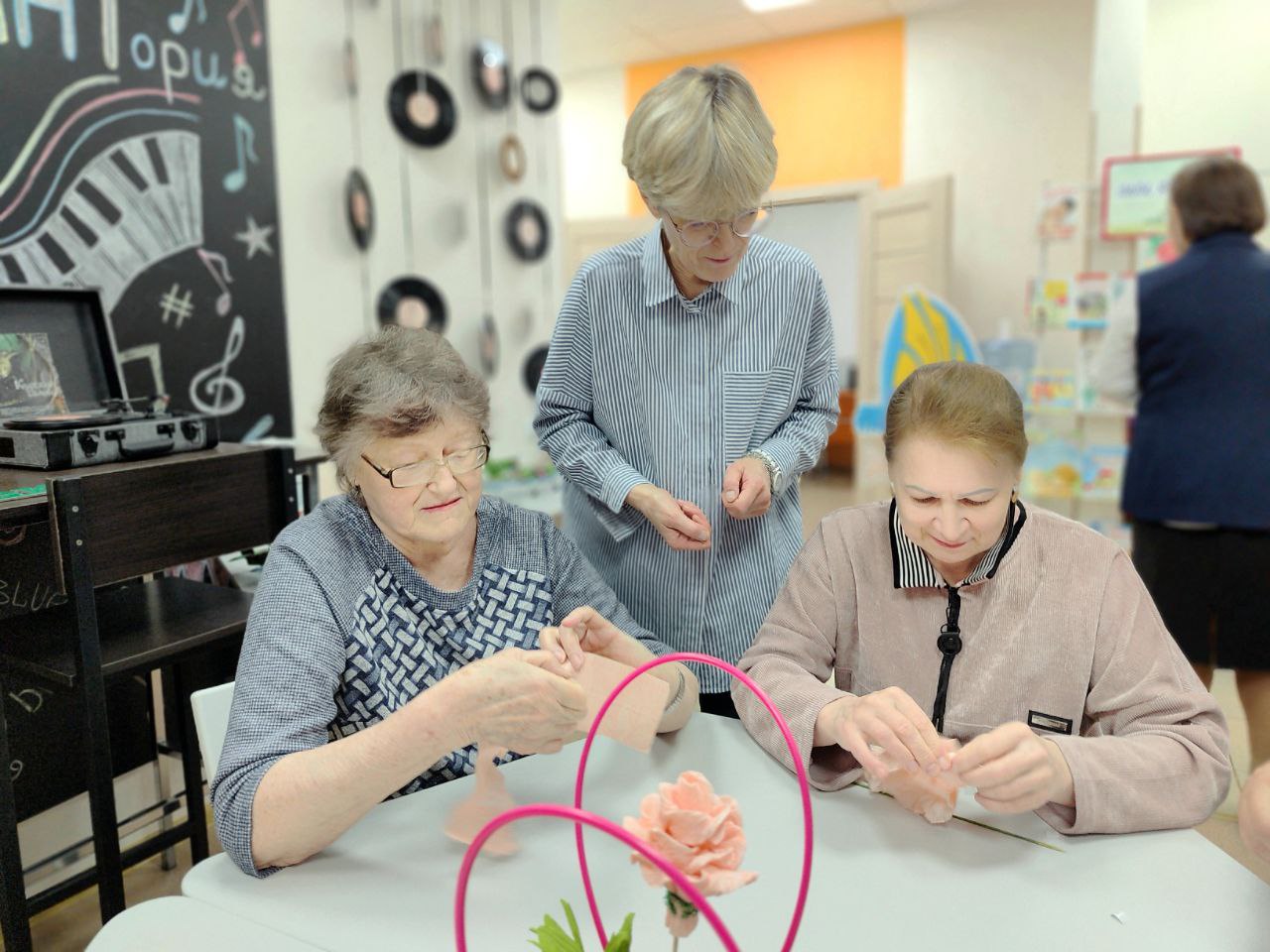 В программе был и мастер-класс «Очарование розы», который провела педагог дополнительного образования Дома детского творчества Железнодорожного округа Диана Бугорская. Под ее руководством участники создали символ красоты и долголетия из гофрированной бумаги.
