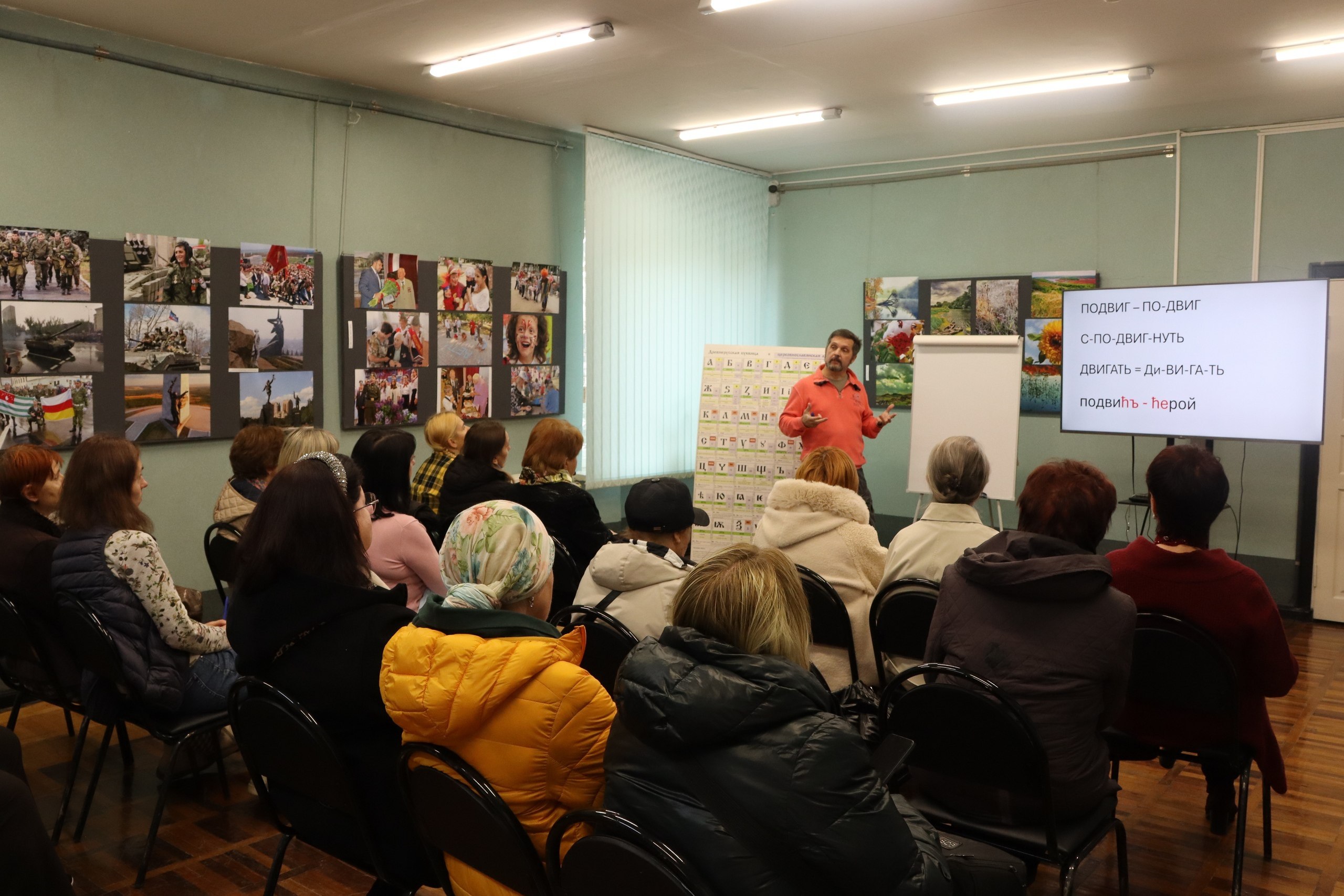 Ее провел исследователь русского языка Юрий Матасов. Опираясь на основы азбуки, он рассказал о значении слов «сердце» – середина центра, «подвиг», «дама»; как эти слова между собой связаны; почему дама должна видеть этот подвиг и как реагировать.
