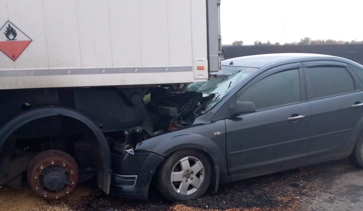 Автомобиль «Форд Фокус» врезался в стоящую фуру «Скания». В результате аварии пострадал пассажир легкового автомобиля.