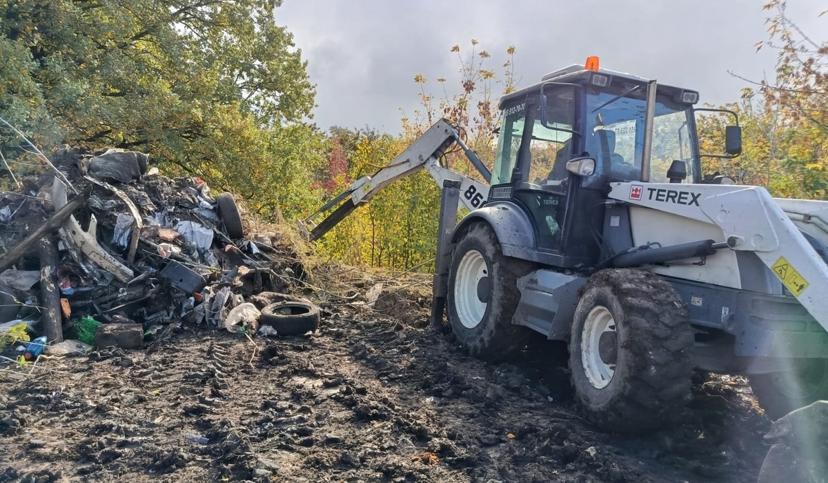 В Курске в районе дома №15 на проспекте Дериглазова убирают несанкционированную свалку.