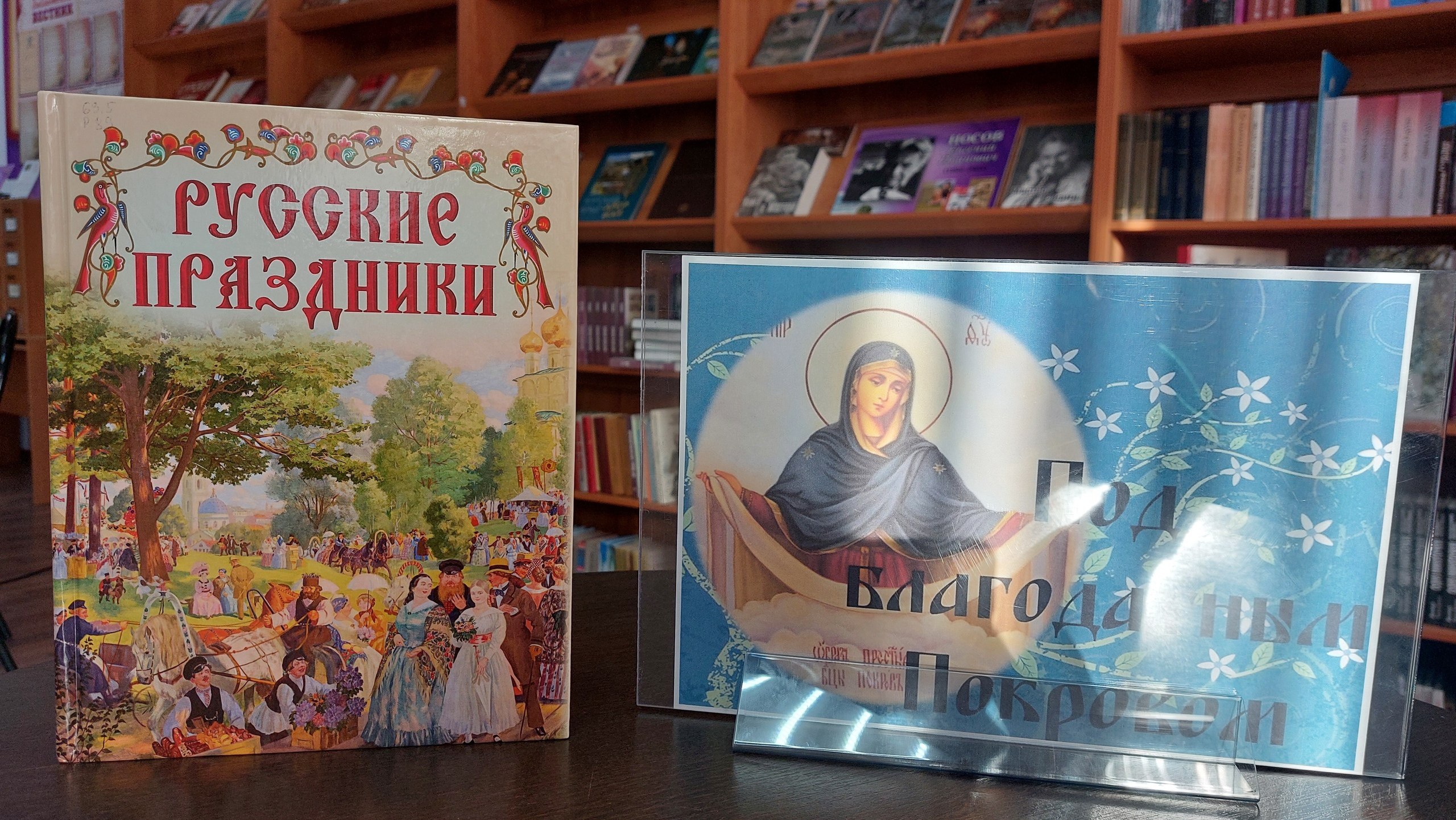 Ежегодно 14 октября отмечается большой христианский праздник — Покров Пресвятой Богородицы. Православные люди в этот день вспоминают, что Дева Мария покрывает нас Своим Пресветлым Покровом, защищает от всяких бед, подобно тому, как покрывается осенью земля разноцветным ковром из листьев. С целью духовно-нравственного воспитания в преддверии праздника в библиотеке организована книжная выставка.
