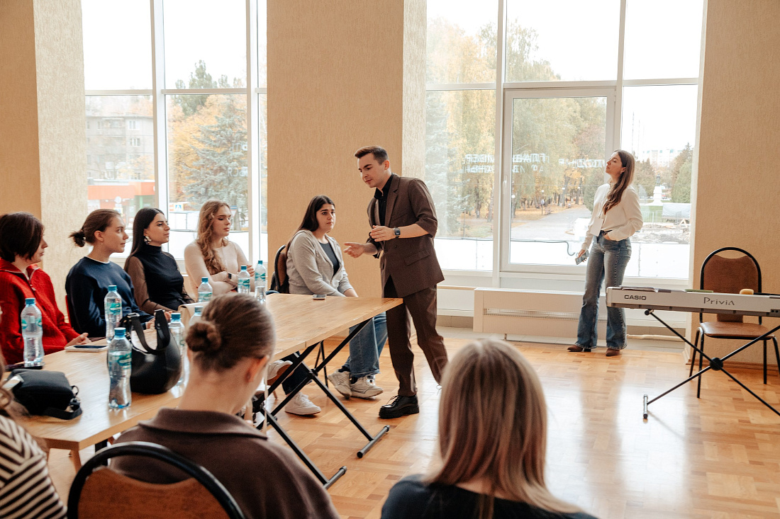 С участниками вокального направления работает певец, автор песен, участник музыкальных телепроектов Владислав Поварков. Он провел интерактив, на котором ребята смогли пройти диагностику голосов, проанализировать и скорректировать базовые исполнительские навыки.