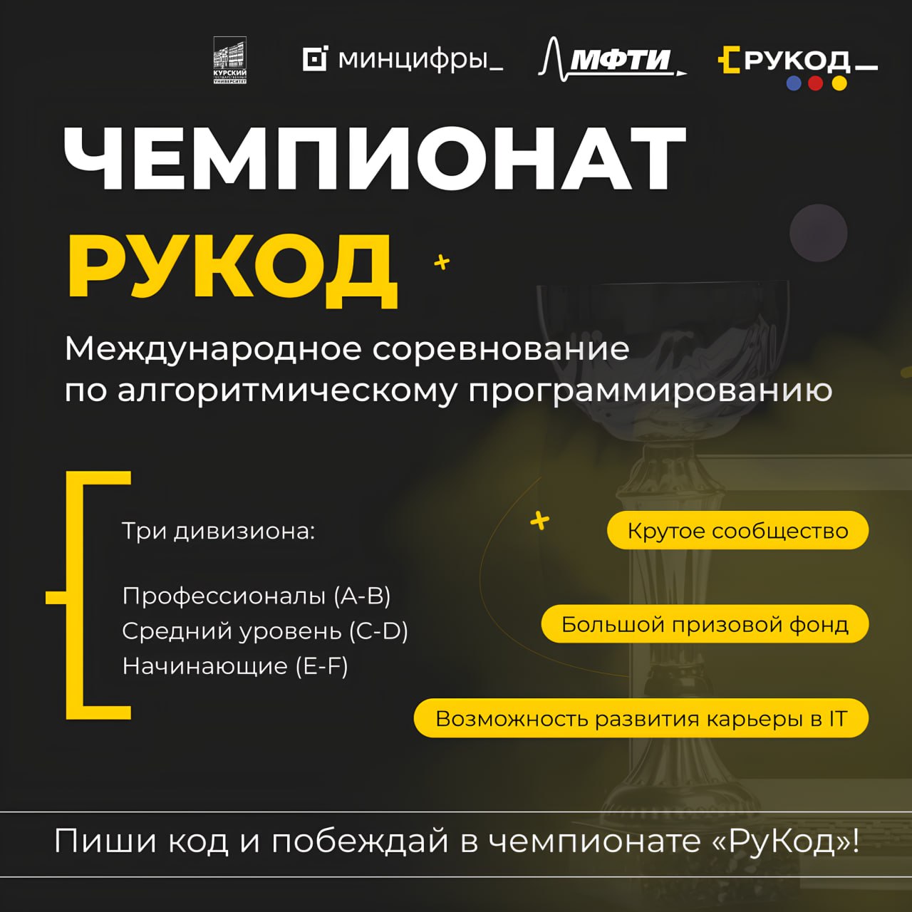 «РуКод» — международное состязание по решению алгоритмических задач с помощью написания эффективного и оптимизированного кода.