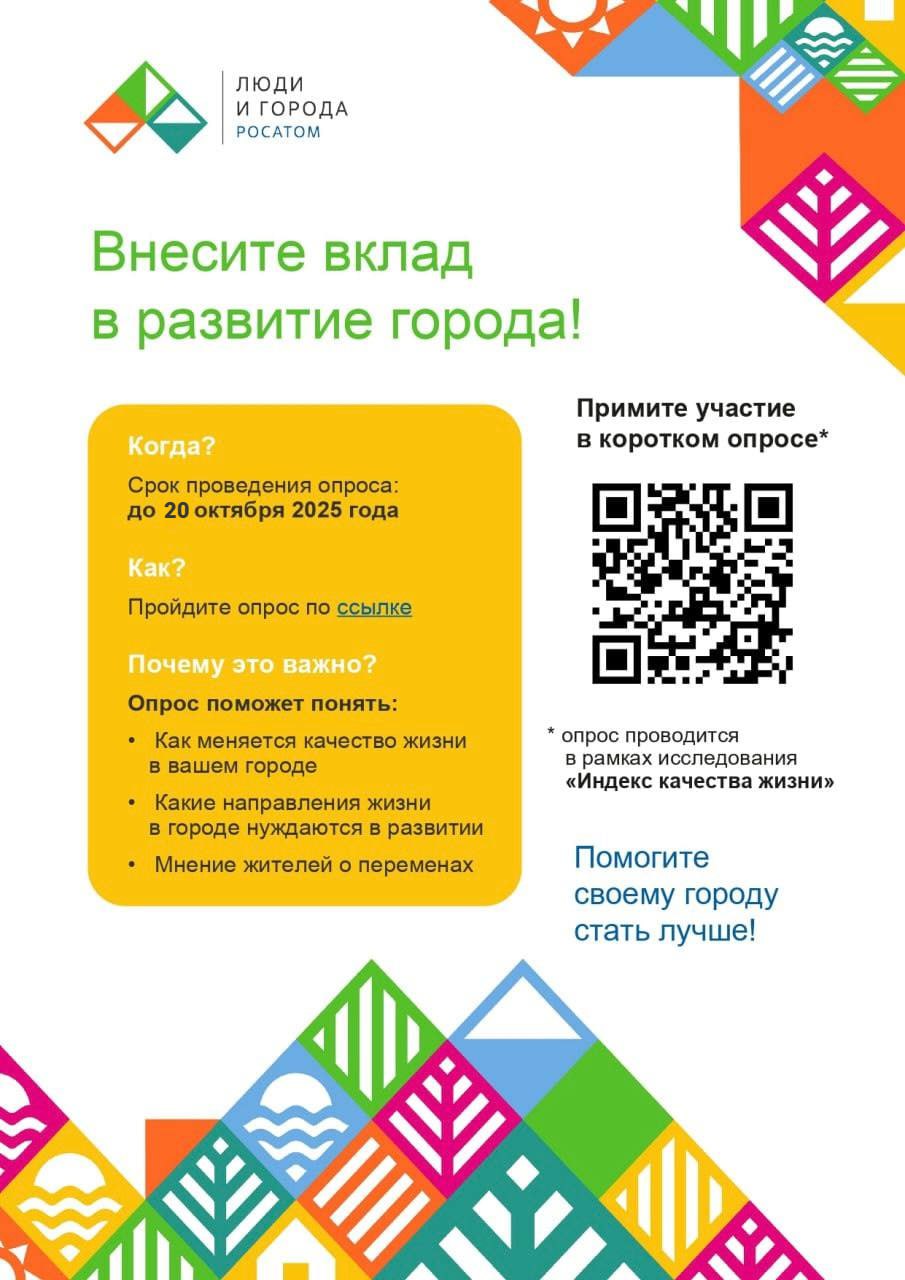 Дорогие друзья, опрос о качестве жизни в нашем городе продлили до 20 октября