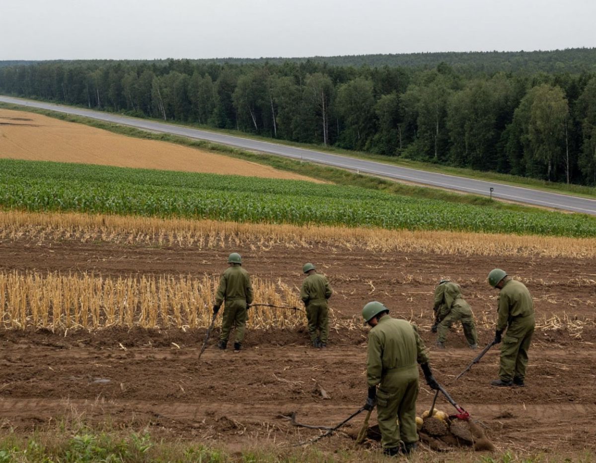 Саперы Северян зачищают от мин поля сельхозназначения в Курской области. Эта работа идет с применением специальных машин БМР-3М.