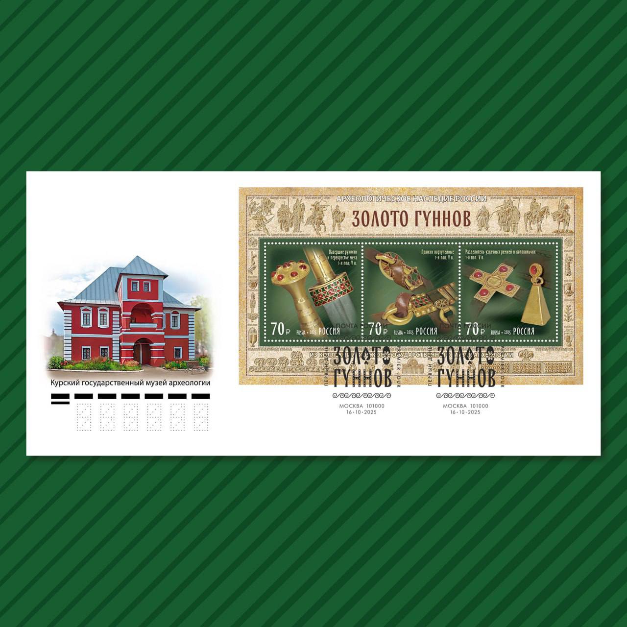 Ещё одна достопримечательность Курской области — на почтовой продукции. Сегодня в обращение вышел почтовый блок, посвящённый одной из самых драгоценных экспозиций Курского музея археологии, — «Золоту гуннов».