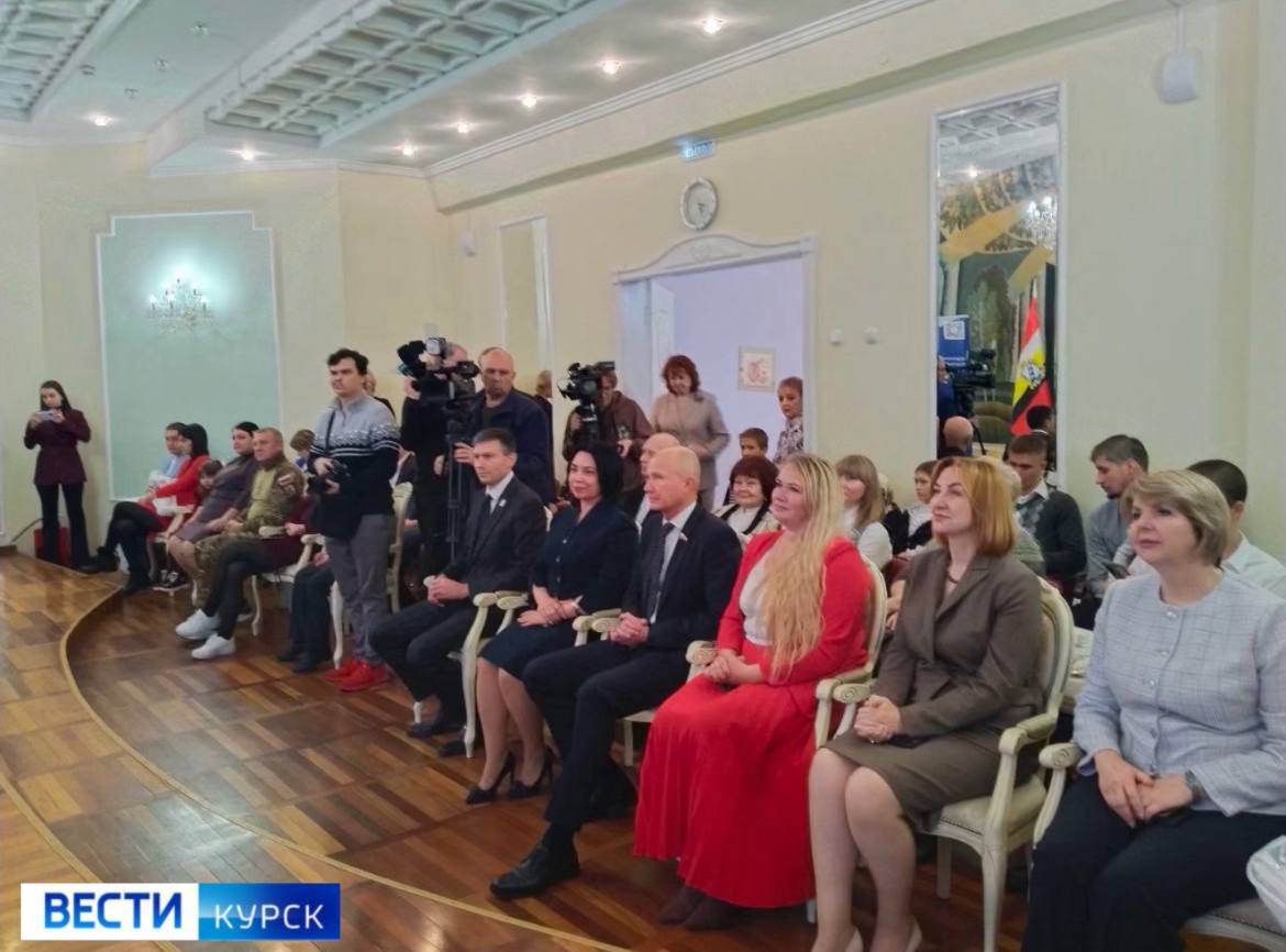 В преддверии Дня отца в Центральном ЗАГСе Курска поздравили молодых пап, участников СВО, многодетных и тех, чей союз длится уже 55 лет. На торжестве присутствовали и те семьи, в которых дети ещё только планируются.