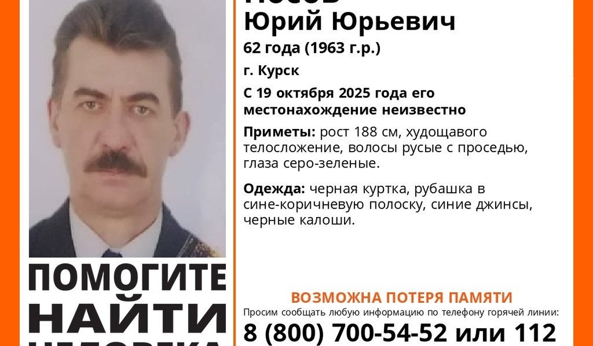 Курян, которые располагают сведениями о местонахождении Юрия Носова, добровольцы просят позвонить по телефонам: 8-800-700-54-52 или 112.