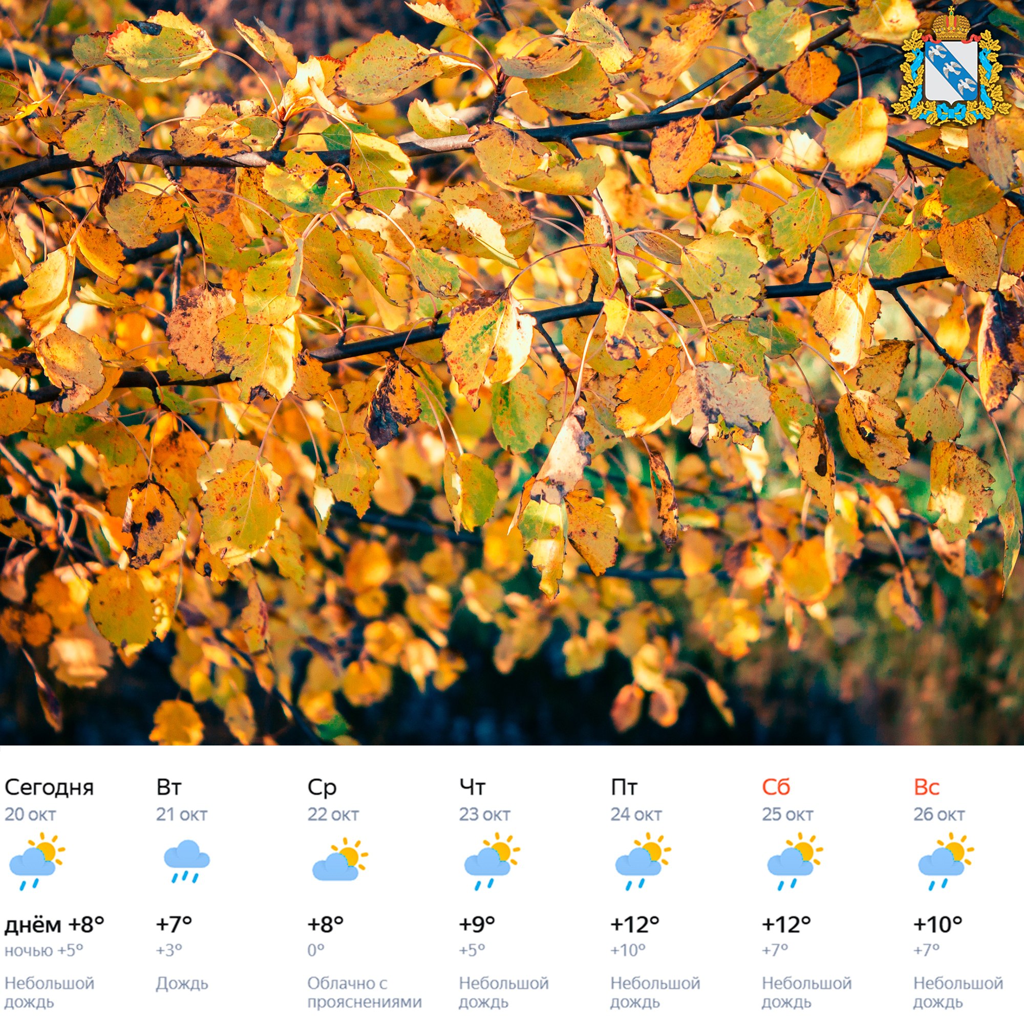 Доброе утро!Сегодня, в понедельник, 20 октября, по прогнозу регионального отделения МЧС, в Курской области облачно. Временами дожди, местами сильные. Ночью местами туман.Ветер восточной четверти 7-12 м/с.Температура: ночью 3-8° тепла, днем 5-10°.