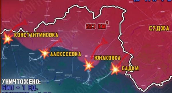 На всем участке фронта авиация ВКС РФ, расчеты ударных БПЛА и ТОС-1А активно работали по позициям ВСУ . Противник оказывал ожесточенное сопротивление и перебрасывал резервы, ВСУ провели три безуспешные контратаки возле села Константиновки и с потерями отошли на исходные позиции, один украинский военный сдался в плен.