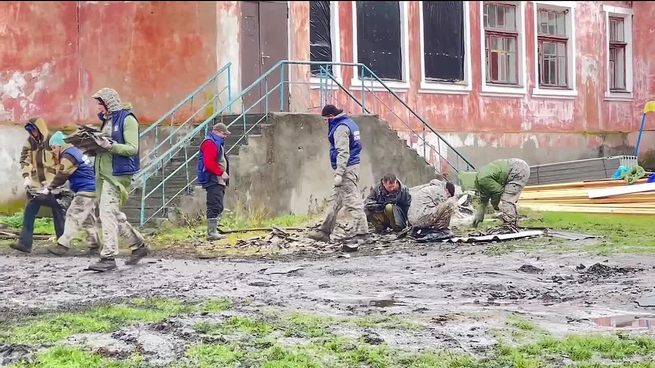 Участники 7 смены волонтерского лагеря Единой России «Курский рубеж» продолжают работать на социальном обьекте – школе в поселке Курского приграничья. Группы предыдущих смен восстановили в здании тепловой контур, перекрыли крышу новым шифером. Теперь доделываем мелочи и убираем строительный мусор.