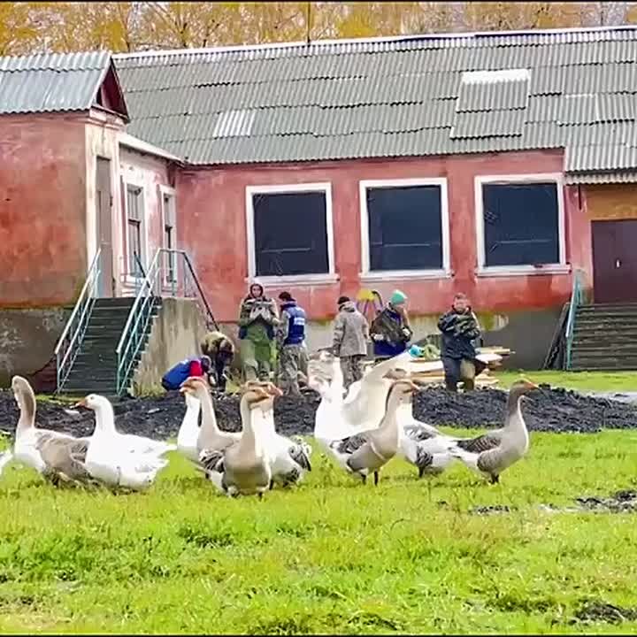 Гуси пришли понаблюдать за тем, как работают участники волонтерского лагеря #ЕдинаяРоссия #КурскийРубеж