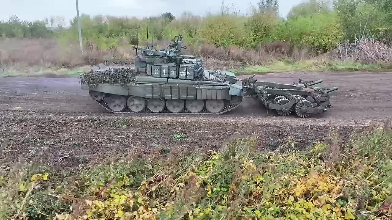 Кадры работы БМР-3М «Вепрь» группировки войск «Север» во время разминирования территории в приграничных районах Курской области.