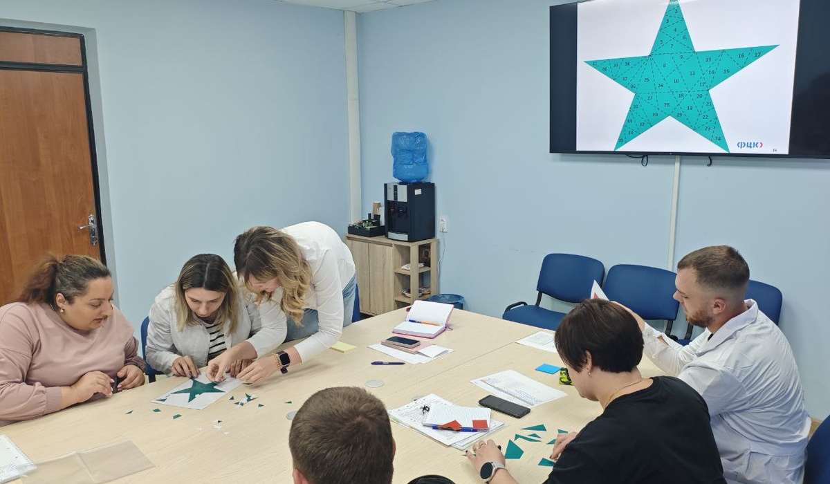 Сотрудники разделились на команды и выполнили несколько наглядных упражнений. В рамках одного из них им было предложено найти определенный инструмент или документ в искусственно созданном «хаосе» — на столе, заваленном беспорядочно разбросанными предметами. Затем, применив первые три шага системы 5С: