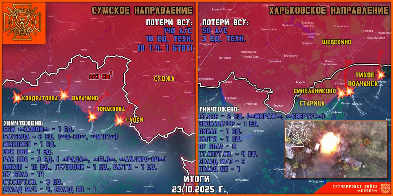 23 октября группировка войск "Север" продолжила создание полосы безопасности в Харьковской и Сумской областях