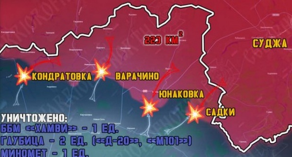 За минувшие сутки 23 октября на Сумском направлении Северяне продолжали продавливать оборону ВСУ, на правом фланге наступления. Штурмовые группы продвигаются по лесополосам вглубь Сумской области. Активную поддержку им оказывают авиация ВКС РФ и тяжелая реактивная артиллерия.