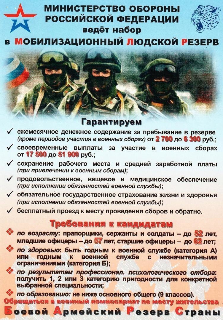 Первый контракт с Минобороны заключается на три года. Резервисты могут совмещать основную гражданскую работу с военными занятиями и сборами.