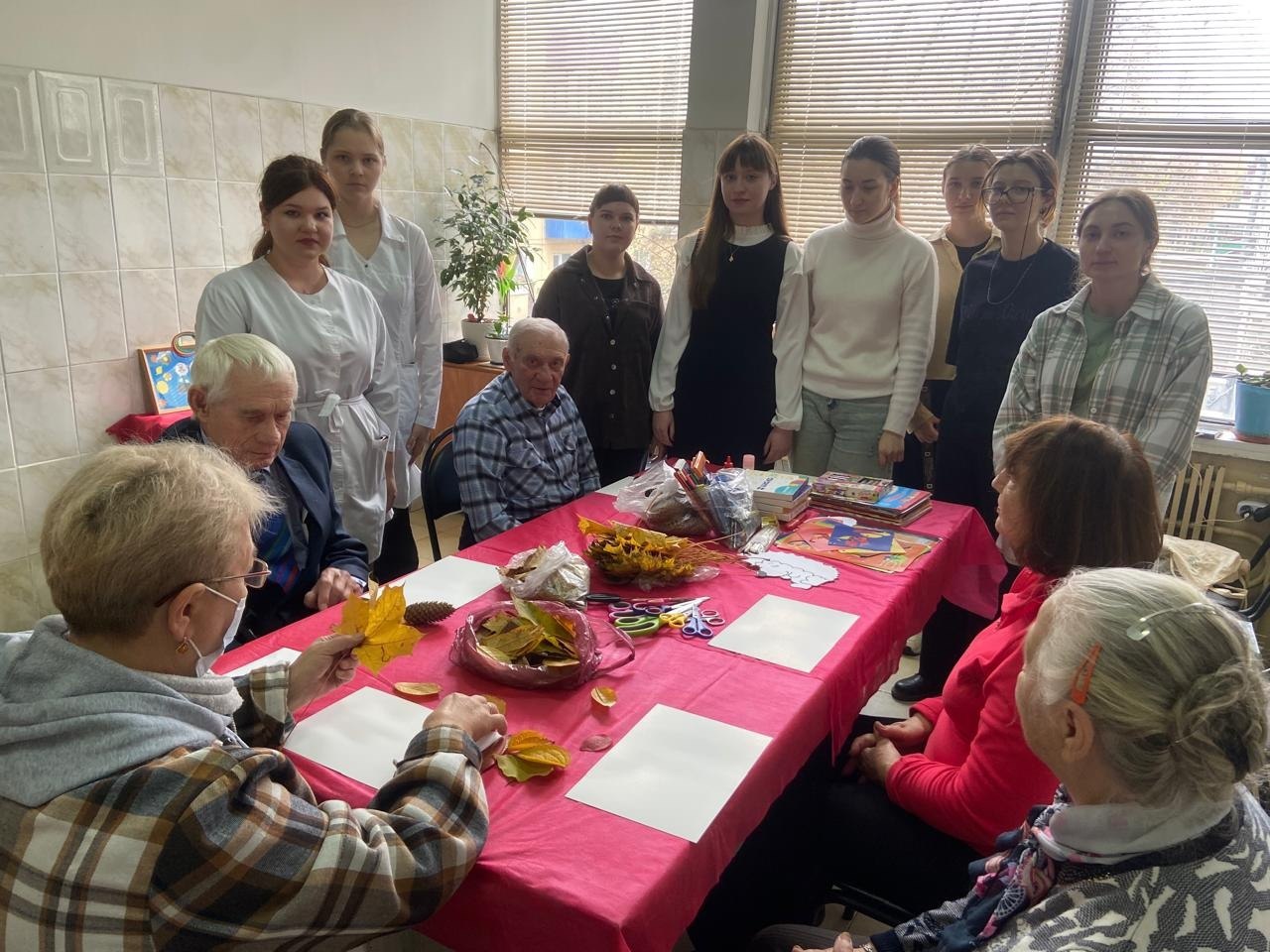 В социальном учреждении «Ветеран» прошел мастер-класс по изготовлению коллажа из осенних листьев «Золотая осень», который провели студенты кафедры социальной работы при поддержке Добро.Центра КГУ.