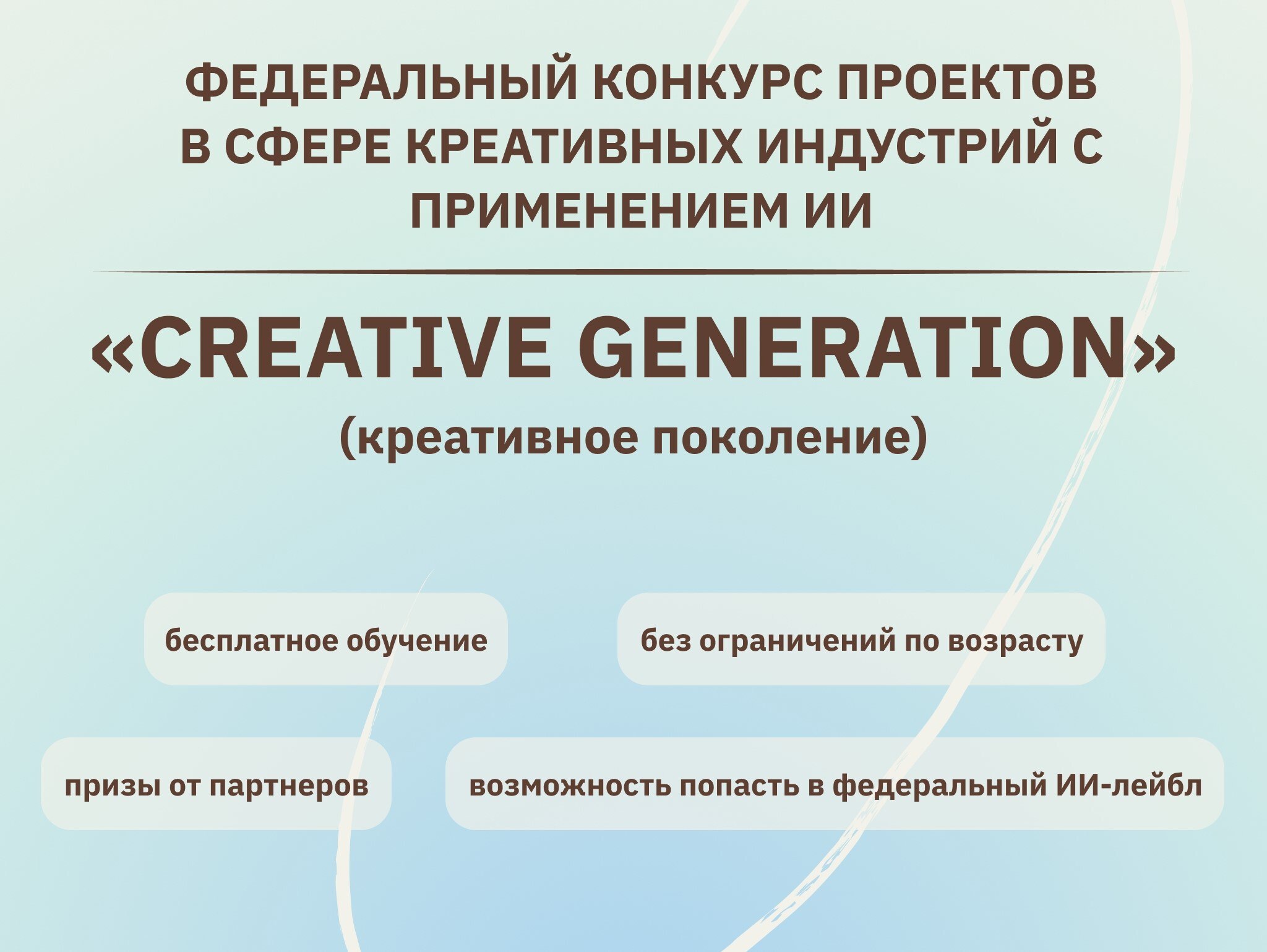 Уважаемые специалисты, студенты, начинающие разработчики и опытные профессионалы из разных сфер! Приглашаем вас принять участие в федеральном контент-хакатоне в сфере креативных индустрий «Креативное поколение»